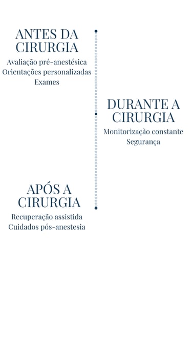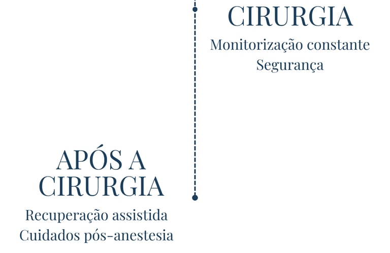 Ao final, você será levado(a) para a sala de recuperação, onde permanecerá em observação até estar seguro(a) para ir para casa ou para o quarto. Nossa equipe continuará monitorando e orientando sobre cuidados para o pós-operatório.